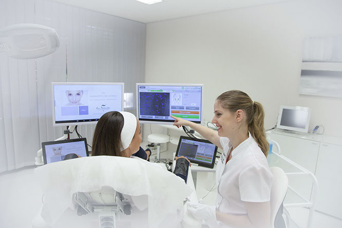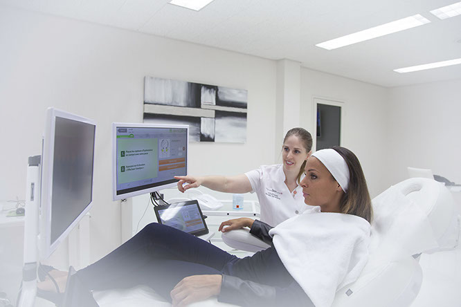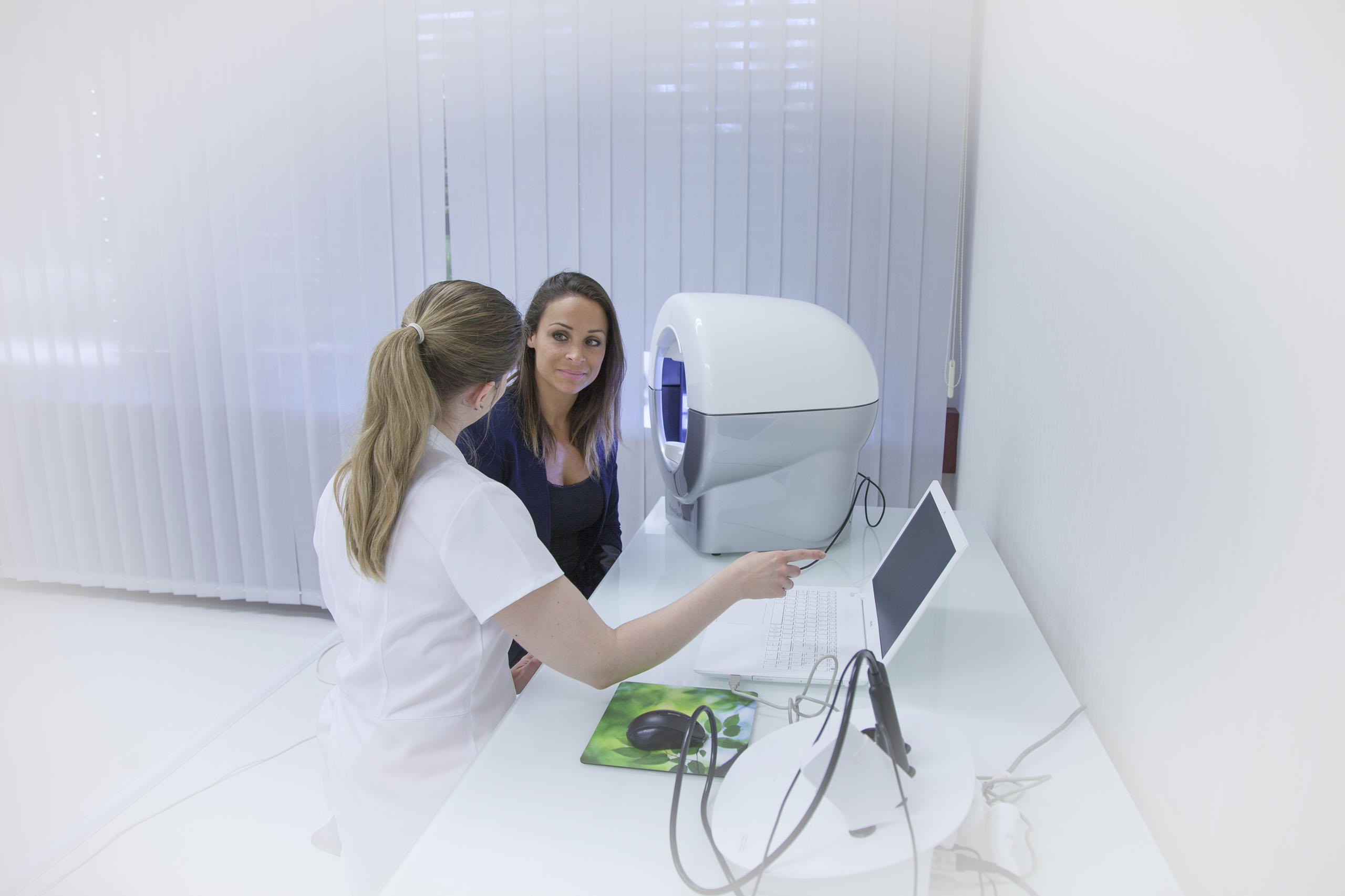 L'ensemble des appareils de mesure est relié à des ordinateurs qui croisent toutes les données, émettent les photos de la peau vue de l'intérieur afin, preuves à l'appui, de permettre au diagnosticienne ou diagnosticien intervenant en fin de consultation, de vous expliquer votre véritable état cutané. Cette explication servira à vous guider vers les cosmétiques à utiliser prioritairement, ceux que vous devez éviter et de vous conseiller à réaliser les bons gestes de soin au quotidien.