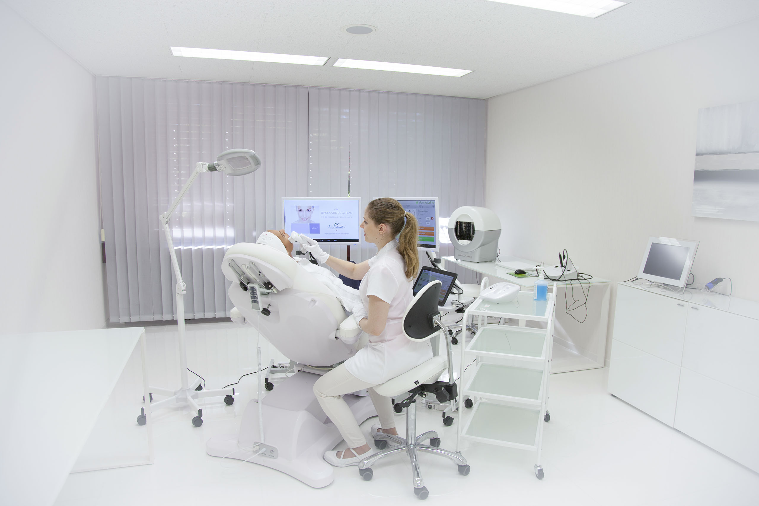 Grâce à un logiciel dédié qui permet, à partir de caméra à lumière polarisée de mesures sur l’épiderme de la peau, d’établir un bilan cutané et une recommandation de produits cosmétiques et de soins esthétiques. Ce système permet aussi de comparer les bilans à 2 moments différents et de suivre dans le temps les évolutions de la peau pour vérifier l’efficacité des soins et des cosmétiques. Ces variations rendent le choix des produits de soin délicat il doit prendre en compte tous ces éléments et ne peut, de ce fait, être toujours identique Il effectue également le suivi de l’amélioration obtenue grâce aux traitements (lumière, oxygène, peelings….)
